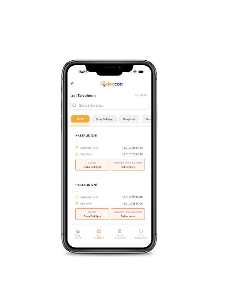 - Yıllık, mazeret ve hastalık izinleri
